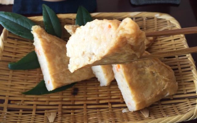 油揚げの中にお米・野菜・きのこ等を詰めて炊き上げる、鳥取県西部の郷土料理。「米子いただき・がいな隊」によると、「鳥取県西部地方(弓浜半島)では おもてなしの料理として 作られていた 家庭料理」とのこと。油揚げの中で炊きあげられたお米にしっかりと味が染み込んでいます!名前の由来は諸説あり、感謝の気持ちを込めて頂くからという他、油揚げの三角形が大山頂上の形に似ているからとも(鳥取県公式HPより)。どちらにしても、ありがた~い気持ちが伝わってくるネーミングですね(´▽`*)